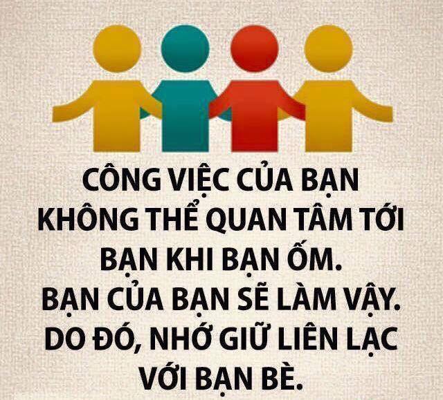 - Công việc của bạn không thể quan tâm tới bạn khi bạn ốm. Bạn của bạn sẽ làm vậy. Do đó, nhớ giữ liên lạc với bạn bè.